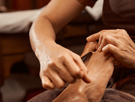 Tratamiento en los pies para aliviar tensiones, activar la circulación y apoyar el funcionamiento del cuerpo.